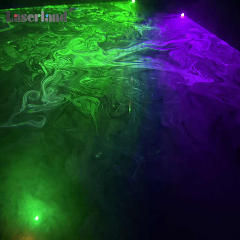 Wavelength decides the color and brightness of the laser. The haunted house owners prefer 532nm green laser for the the priority choice of the laser line modules. The genuine color of green can create satisfying laser swamp effects with fog machine easier than other color. 520nm green is a bit towards blue color. The 520nm green is a second choice. But the power of the laser has to be higher. 488nm blue laser is a rare color for the laser swamp like building a blue sky with clouds. 450nm and 405nm is respectively weak in the human eyes. It can used as a supplenmentary laser light source for add variety for the laser swamp.