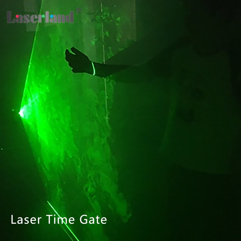 To build a Laser Time Gate, you need use at least 2 laser line module to aim at each other and let the line shine vertically. You can set up two poles and fix at lease one laser line module on each pole. You can also fix more laser line module on the pole to get a better effect. The laser lines from each laser modules must be overlapped at each other to make a single surface.