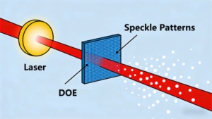 In simple terms, a laser speckle projector is an optical device that generates a random pattern of bright and dark spots (known as “speckles”). These speckles are not not chaotic; they are unique patterns formed by the interference of light when a laser passes through special components like Diffraction Optical Elements (DOE) or ground glass, or when it illuminates a rough surface. These patterns do not intersect or overlap. When projected onto objects at different distances, the pattern changes uniquely—like an “optical fingerprint.”