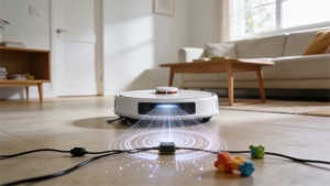 - Smart Home Devices: They serve as the “eyes” for robot vacuum cleaners. A 1,000-point speckle projector continuously projects patterns onto the floor ahead. By analyzing changes in the reflected points, the robot identifies obstacles like furniture, wires, or stairs in real time, enabling safe and efficient cleaning.