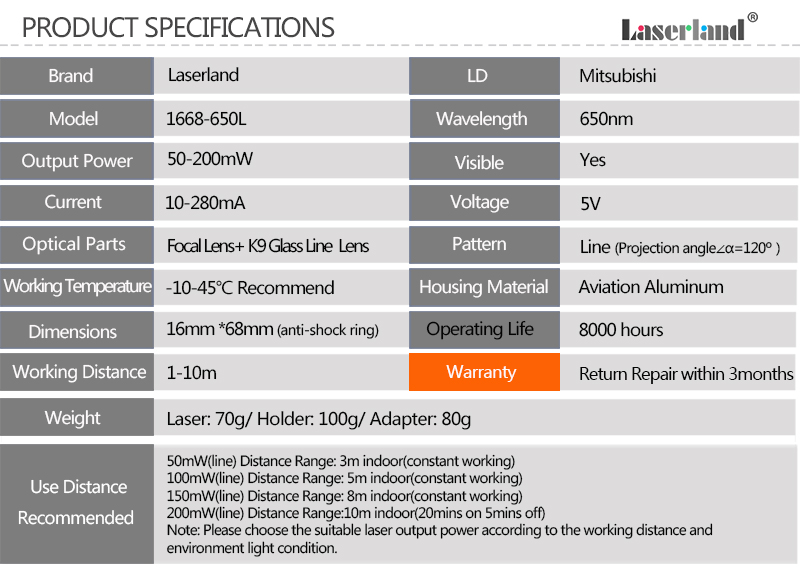 Laserland has many options of laser line models. 1668 and 22100 are the most popular ones.