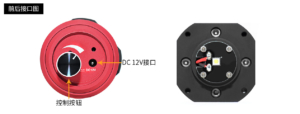 Operation Instructions: Connect a 12 V 1 A power supply to the DC 12 V port. The rotary knob controls power on/off and brightness level.