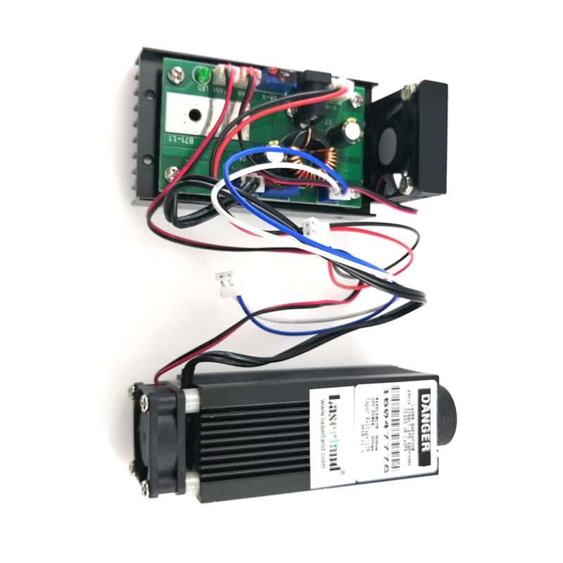- Please add a 12VDC power to this laser module. Red wire connects?+? pole; Black wire connects ?-? pole. TTL 3-5V on, 0V off. If you don’t use TTL, please just leave the blue and white wire.