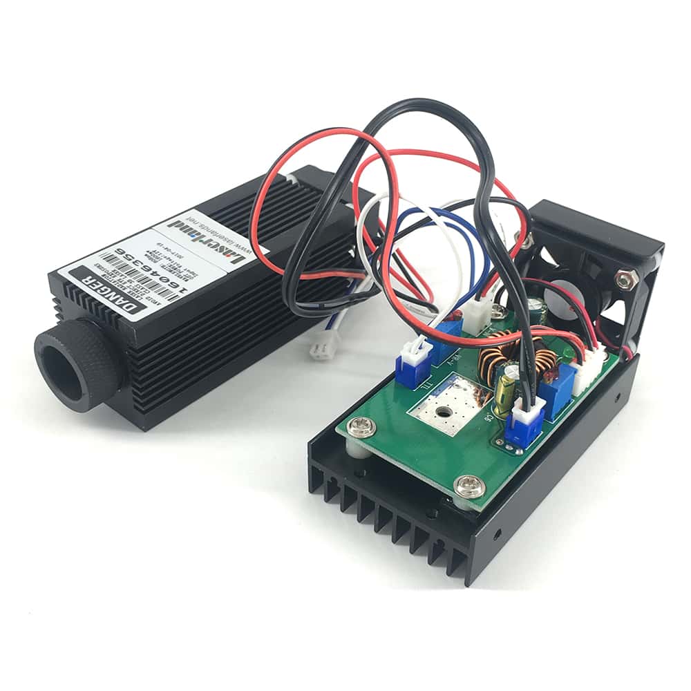 Please add a 5VDC power to this laser module. Red wire connects”+” pole; Black wire connects “-” pole. TTL 3-5V on, 0V off. If you don’t use TTL, please just leave the blue and white wire.