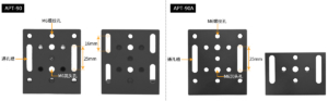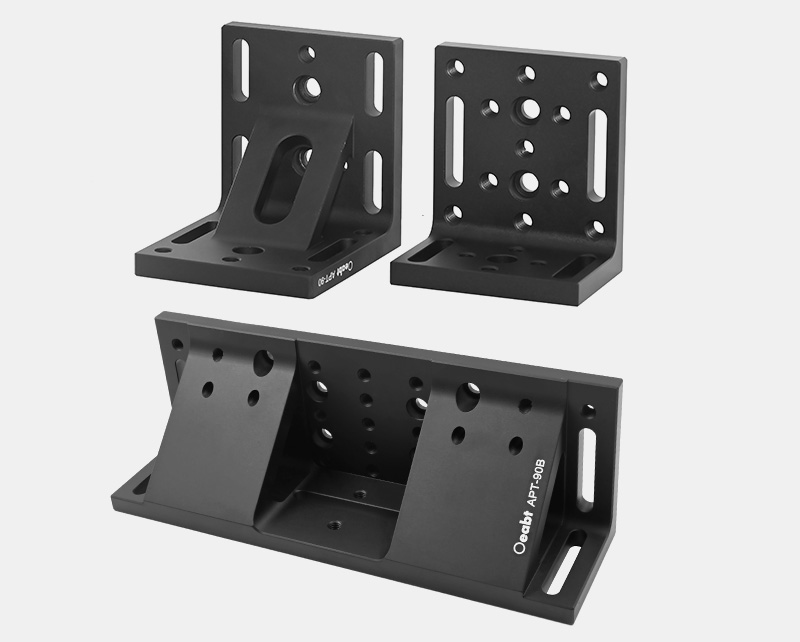 (1) The APT-90 series right-angle adapters are equipped with front and rear panels at 90° to each other, which are highly suitable for three-dimensional optical-mechanical systems requiring vertical positioning. The panels are provided with numerous threaded holes, countersunk holes, and through-hole slots for mounting to various adapter components, breadboards, or optical platforms.