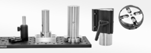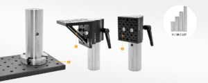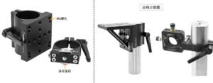 The rod clamps are compatible with our Ø1.5-inch rods. The clamp device on the back can slide on the Ø1.5-inch rod to achieve vertical positioning. Once the desired vertical position is reached, it can be fixed with the quick-release handle on the side. In more compact experimental environments, the handle can be replaced with an M6 cap screw. The handle includes an M6 bolt and can be installed by directly rotating the handle. The internal ratchet drive mechanism prevents the handle from driving the bolt during the return stroke.