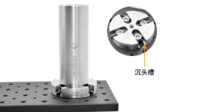 The CFEP-B-S rod base can fix the rod to a breadboard or optical platform. The center of the base is equipped with an M6 threaded hole for connecting to the Ø1.5-inch rod. It also has 4 counterbore slots, providing more freedom when fixing to the breadboard and facilitating the selection of the most suitable mounting holes.