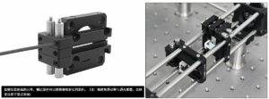 (1) Place the cylindrical lens between the two sliding arms and fit it against the edge of the convex step, then adjust the distance between the sliding arms to clamp the component. The side of the cage plate is marked with scales for centering assistance, with major scale intervals of 5mm and minor scale intervals of 1mm. Note: The cage plate is fixed with adhesive and cannot be moved; only the sliding arms can be translated.
