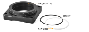 (1)The CRD-S2 rotation mount is designed to mount Ø2-inch (50.8mm) optical components up to 13mm thick onto an SM2-threaded (2.035”-40) rotation frame. Optical components are fixed using the included CSK4 SM2 retaining ring, and an additional washer is provided to protect the lens.