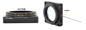 (2) It supports 360° manual rotation with a dial featuring 2° indexing and numerical markings every 20°. The smooth rotation mechanism allows precise positioning, and a nylon set screw on the side locks the rotation ring after positioning. This set screw can be loosened with a 2mm hex wrench.