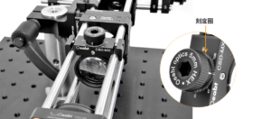 (3) The optical element can be rotated via a knurled knob or a 5mm internal hex key, and the rotation axis position of the optical element mount can be locked with a 1.3mm hex key. The flexible clamp block base is marked with a graduation line every 5°, and the angle of the optical element can be read when the graduation aligns with the triangle on the knob. Note: When used with a beam splitter at a 45° incident angle, the clear aperture will be an ellipse with a minor axis of approximately 8mm.