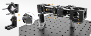 (3) The center of the rotation cage plate features a fully through SM1 (1.035″-40) threaded hole with a depth of 25.4 mm, ensuring no axial offset of the cage plate during rotation. The cage plate comes with two CSK3 retaining rings, allowing direct mounting of Ø1-inch optical lenses.