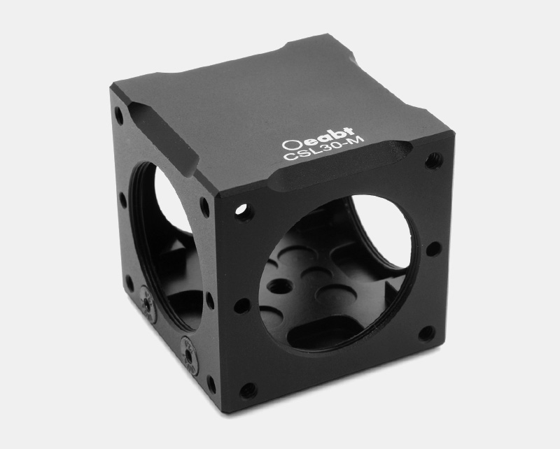 The 30mm cage cube is built for mounting prisms, beam splitters and other optical elements that produce a 90° optical path offset. It is used to install 20mm/25mm/1-inch beam splitter cubes or right-angle prisms into 30mm cage systems, serving as an adapter for cage system construction and a protector for optical lenses.