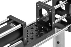 (3) Each end is provided with four through holes compatible with Ø6mm cage rods, and a setscrew is located on the side of each through hole. A 2mm hex wrench can be used to fasten the cage rods to the U-shaped stage.