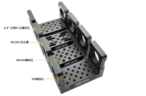 (4) The U-shaped stage is featured with abundant threaded mounting surfaces, including 1/4″-20 and 8-32 threaded holes, metric M4/M6 threaded holes, and M4/M6 counterbore grooves. Thread arrays of various specifications are available to meet the mounting requirements of most components.