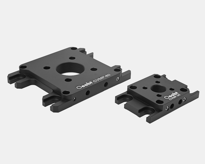 • The vertical mounting plate enables vertical mounting of 16 mm, 30 mm, and 60 mm cage systems to optical platform surfaces, and supports compatible conversion between differentsize cage systems. The CVMP30 converts between 16 mm and 30 mm cage systems, while the CVMP60 converts between 30 mm and 60 mm cage systems.