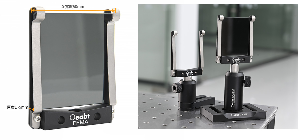 - The FFMA Filter Holder is highly suitable for clamping square filters. Its long support arms provide increased stability to the filter. It is applicable for 50mm and larger-sized square filters. The design takes into account the different thickness requirements of filters and is compatible with optical elements having a thickness of 1~5mm.