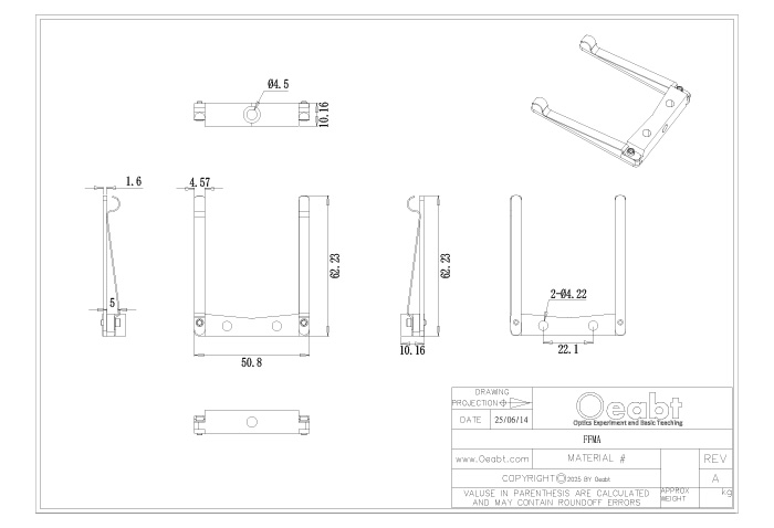 - The center of the mounting holder is equipped with an M4 countersunk hole, which can be mounted on a Ø12mm rod. Additionally, the mounting holder is provided with two through-holes, enabling the stacking of multiple filter mounting bases using M4 long screws to achieve the installation of multi-layer filters.