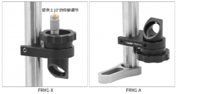 (3)Both the FRM1-A Bottom Mount and FRM1-X Top Mount can be used independently. The clamp block is designed to attach to Ø25mm and 1″ diameter posts of any length, enabling users to customize assembly and combination. The mounts are compatible with 1″ diameter optical elements with a thickness of ≥ 3.3mm and allow 360° continuous rotation. The rotational position can be locked by tightening the side setscrew with a 2.5mm wrench. In addition, the micrometer on the FRM1-X enables ±10° tilt adjustment with a resolution of 9.43 mrad/rev.