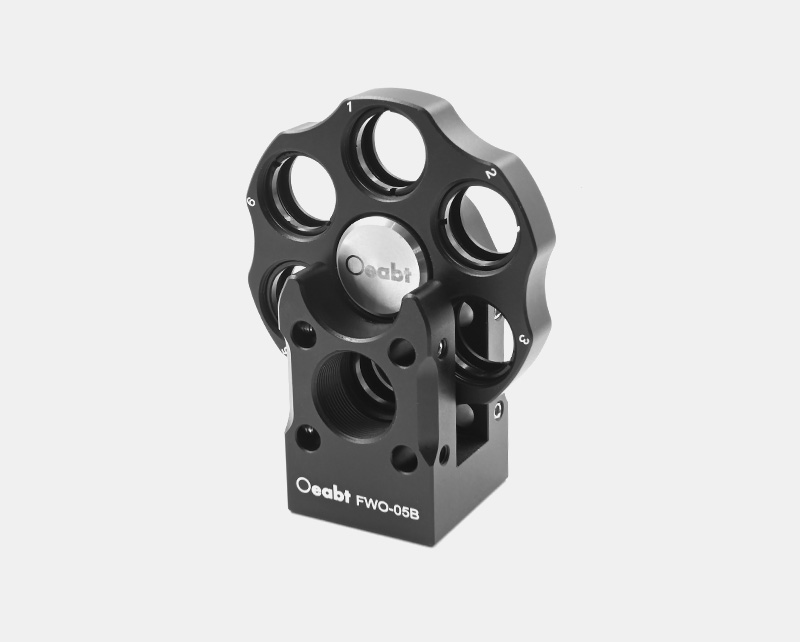 The FWO-05B Filter Wheel is compatible with 16mm coaxial systems, featuring six filter holders with SM05 threads. It can mount optical components of Ø0.5 inches and maximum thickness 4.5mm.