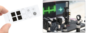 - Etched chrome-plated glass mask, used for filtering patterns in the Fourier plane;