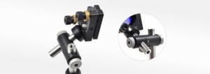The H-22-AB rotation mount features aluminum capped set screws, which are used to fix the rod and the adjusted angle. One end of the A-axis is fixed to the vertical rod, and the B-axis, fitted with a 12mm support rod, can be rotated freely to the desired angle and tightened.