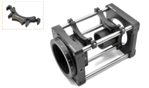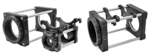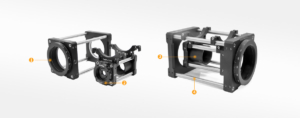 The LPCM-E adapter enables subassembly insertion, allowing our 30 mm cage assembly to be installed between two 60 mm plates in a 60 mm cage system. It features a flexible clamping mechanism for stable attachment to two cage rods of the cage system.