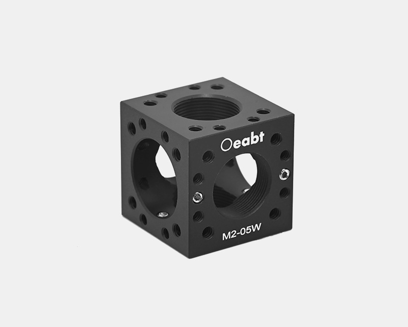 Each side of the M2-05W cage cube is provided with 4-40 threaded holes spaced 16mm apart, allowing direct mounting of SPCM series Ø4mm cage rods. The LFM05-C prism mount can integrate prisms or cubes up to 10mm into the M2-05W 16mm cage cube. The CSJ-T05 cube clamp can be directly mounted on the 16mm cube for use with the prism mount, usually installed on the two sides with through-holes.