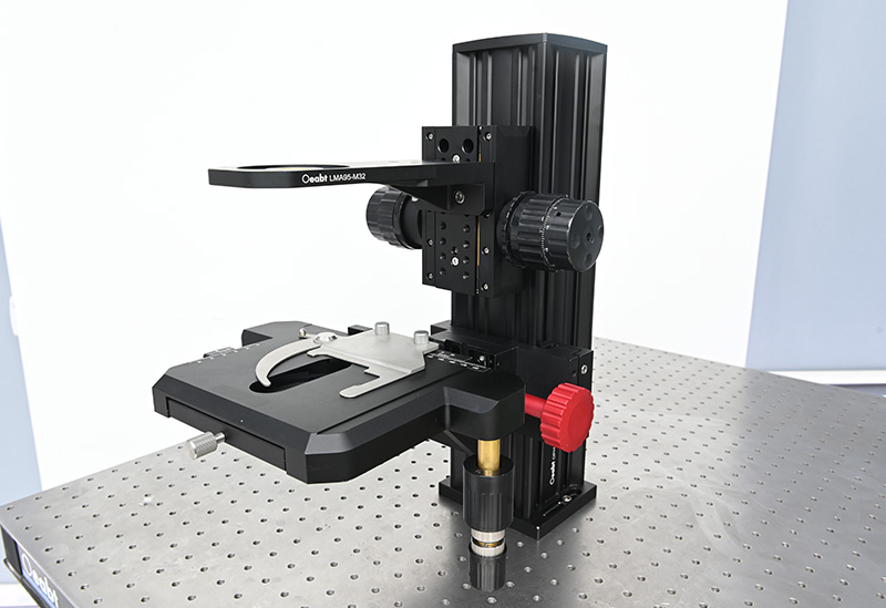 The stage adopts ball bearing drive, with a vernier scale of 100μm precision on the edge of each axis for easy sample positioning.