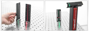 (3) The bottom of each straightedge is equipped with a pair of locating pins, which can be easily inserted into the holes of 25mm-spaced optical platforms or breadboards. When used on magnetic surfaces, the two neodymium magnets at the bottom enhance stability.
