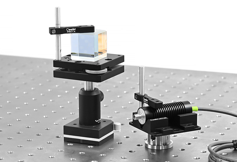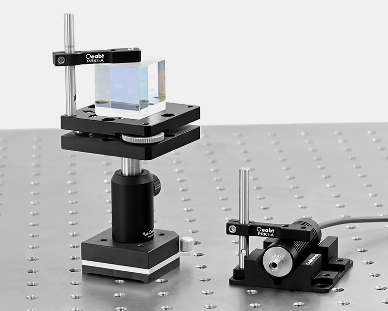 The V-shaped clamping mount is designed to hold cylindrical objects with diameters between Ø13.5mm and Ø42.0mm. Optical components are secured to the platform-equipped adjustment mount and V-shaped clamp block via nylon-tipped set screws (compatible with 2.0mm hex wrenches) on the PRK1-A pressure arm. (Each mount includes one pressure arm; additional arms can be purchased separately.)