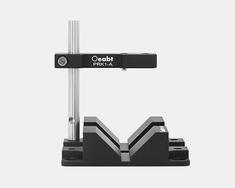 The V-shaped clamping mount is designed to hold cylindrical objects with diameters between Ø13.5mm and Ø42.0mm. Optical components are secured to the platform-equipped adjustment mount and V-shaped clamp block via nylon-tipped set screws (compatible with 2.0mm hex wrenches) on the PRK1-A pressure arm.