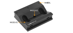 The V-shaped clamp block is equipped with 2 M6 counterbores and 1 M4 counterbore for direct installation onto optical platforms or rods.