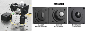 (3) The mount is equipped with four SM1-compatible optical ports and 4-40 screw holes, enabling compatibility with Oeabt series lens sleeves and 30mm cage systems. The two input/output optical ports are fitted with PEC11-SM1 adapters, compatible with Ø11-Ø12mm fiber optic collimators for connecting fiber-optic-based light sources, detectors or spectrometers. The other two ports are supplied with CSL-P1 dust caps for light and dust protection.