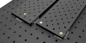 Made of nonmagnetic aluminum, these breadboards serve as costeffective platforms for optical setup prototyping, experiments, and small optical system integration. The surface features black anodization to minimize light reflection. With a 25 mm × 25 mm hole grid and threaded holes extending through the board (12.5 mm from edges), components can be mounted on any side.