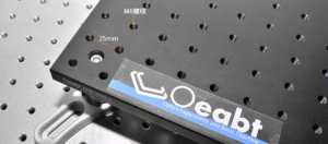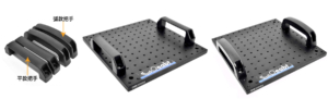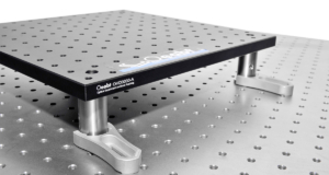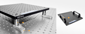 The breadboard can be elevated using Ø25 mm stainless steel posts, raising it above the working surface of an optical table or another breadboard. This setup simplifies handling and provides vibration isolation, leveling, and stability.