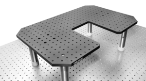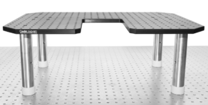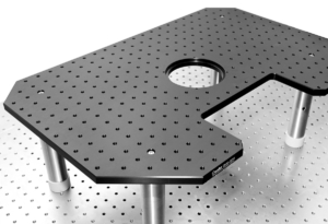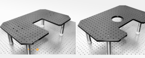 The OHDSP series special-shaped optical breadboards feature a recess and central throughhole design, enabling mounting around microscope optical paths to support sample holders, micromanipulators, and multi-component experimental setups. The M6 threaded holes penetrate the entire breadboard with a 25 mm array pitch.