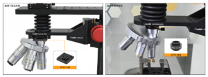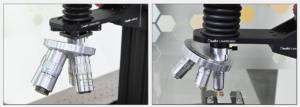 The microscope objective revolver enables simultaneous installation of multiple objectives with different magnifications, allowing users to quickly switch between objectives by rotating the turret.