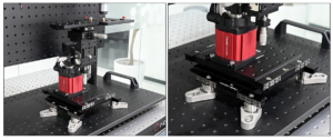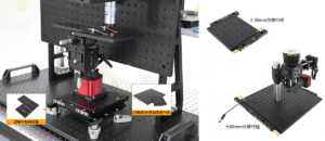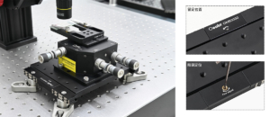 The OMB series largearea manual translation stage is ideal for adjusting experimental setups on optical tables. It features simple operation: push the stage for coarse positioning.