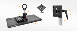 (2) The working panel of the base plate features an array of multi-type threaded mounting holes. This degree of freedom allows users to install various components or platforms in a wide range of orientations. The long countersunk slotted hole on the base plate is located at the center, enabling the base plate to rotate 360° and perform rough translation on the optical platform.