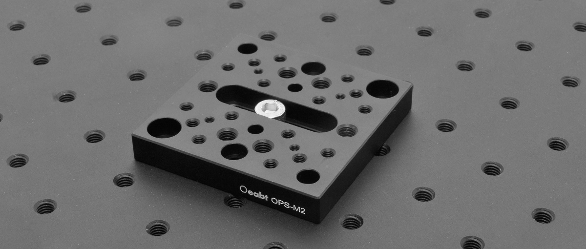 The universal base plate features mounting holes compatible with the threaded hole arrangements of almost all optical platforms and breadboards, enabling flexible assembly of optical equipment. It provides mounting holes perpendicular to optical platforms or breadboards in any direction, increasing the flexibility of optical setups.