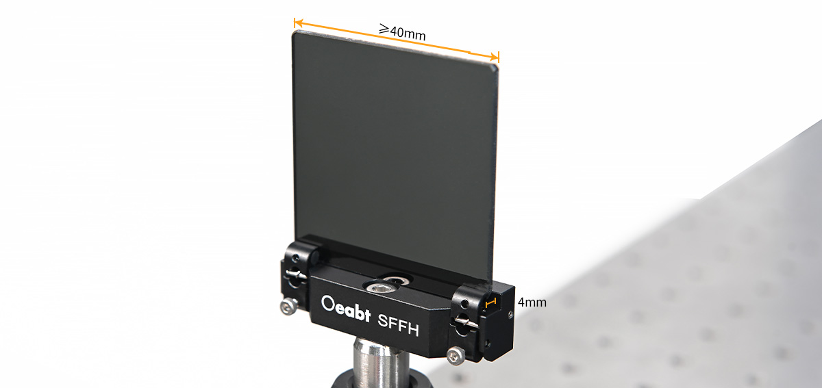 • The inner side of the locking arm is equipped with high-elasticity rubber gaskets, which firmly clamp while effectively preventing filter damage. It is compatible with square or rectangular filters up to 4mm thick and ≥40mm wide. It provides a larger clear aperture, reducing obstruction to the light beam path, and is particularly suitable for large-angle incidence or large-field-of-view optical systems.