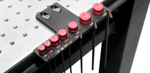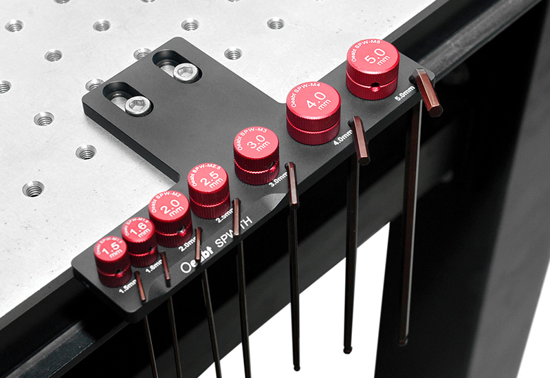The SPW-TH Wrench Tool Holder is a highly practical storage rack for ball-head screwdrivers, providing convenient storage space. It is fixed on optical platforms using the included M6 stud screws.
