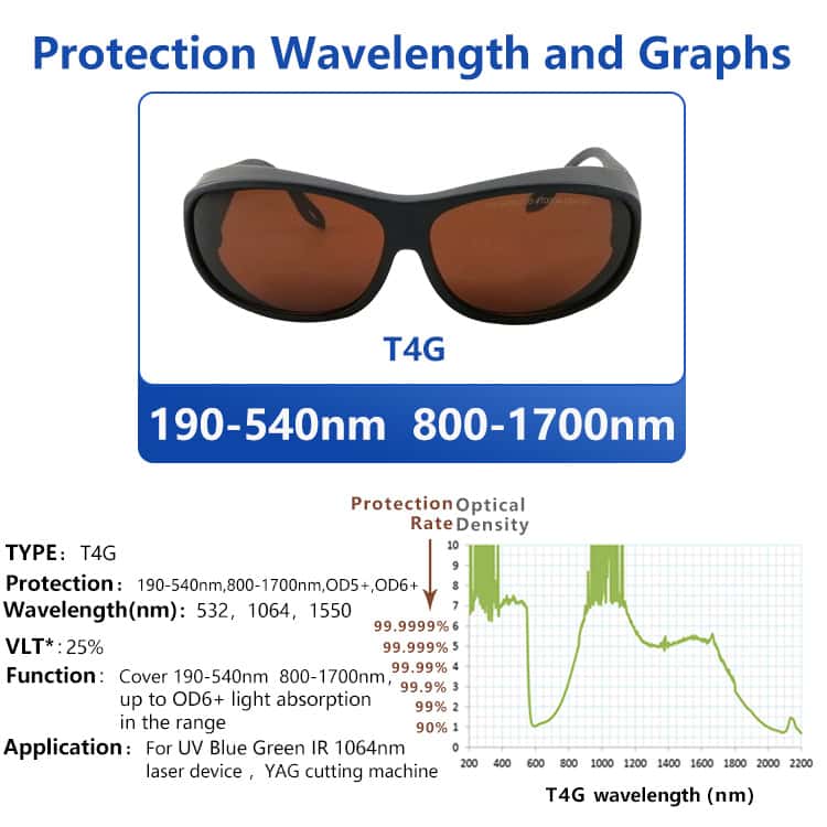 T4G Laser Tattoo Removal Picosecond laser Protection glasses 190nm-550nm 800nm-1700nm Green Yag Laser Safety use
