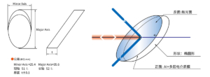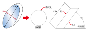 (2) When the reflector is at a 45° angle, the minor axis length of the ellipse will become the effective clear outer diameter of the optical element.