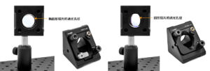 We recommend using our KCD1L series right-angle adjustment frames for mounting circular and elliptical optical lenses. Since the mounting plate is at a 45° angle to the standard horizontal position, this hole is equipped with a gap cut, which can provide the maximum clear aperture for any transmitted light and provide space for operating the installed optical elements. The difference between the elliptical and circular clear apertures is that the mounting frame for elliptical optical elements forms a larger clear aperture, while a Ø1-inch circular lens can only form about half of the clear aperture.