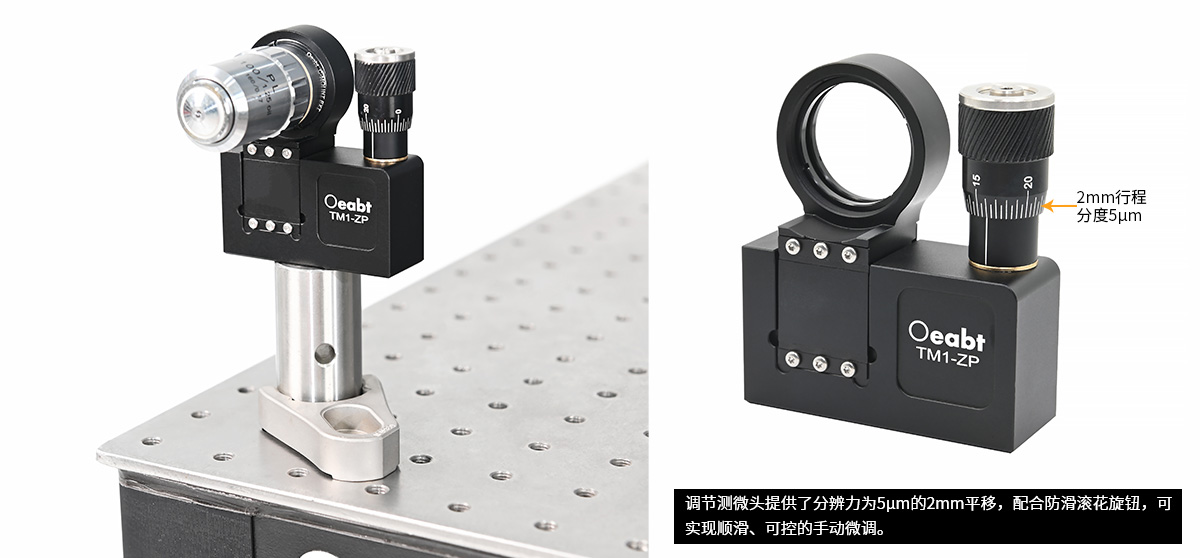 The TM1-ZP translation mount adopts a high-precision flexure mechanism to achieve stable and repeatable Z-axis fine adjustment. It enables precise positioning of optical components along the optical axis.