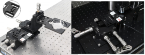 The microscope slide holder allows direct mounting of slides and petri dishes on motorized translation stages, and can be integrated into custom microscope setups such as optical tweezers for use.